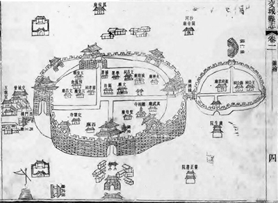 为避水患,城西门南曲,北门东曲,城形似牛身,东关形似牛首,故有“卧牛城”之称。