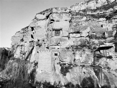 这是一项宏大艰巨的工程,石壁下面是滔滔黄河,搭不成脚手架,只能从山顶悬索而下,先凿石窝,安木楔,架栈道,然后再逐步展开工地。砂岩如磐、石质坚硬,没有先进工具,全靠人一锤一錾敲打。据说当时工匠用凿下的碎石渣计算工钱,一升石渣换一升米。工程艰巨,可见一斑。而今虽历经三百多年,但石屋墙壁和顶上,錾子的凿痕依然清晰如初,整整齐齐,梳子梳出来一般。