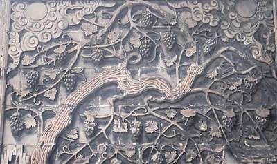 宝梵寺在砖雕上选择了最能代表清徐特色的葡萄。戏台上的砖雕当地人称为“一本万利(粒)图”,取葡萄多粒、多子而寓意多子多孙、富裕,表达了普通百姓期盼家族兴旺、绵延不断、福禄双全的美好愿望。