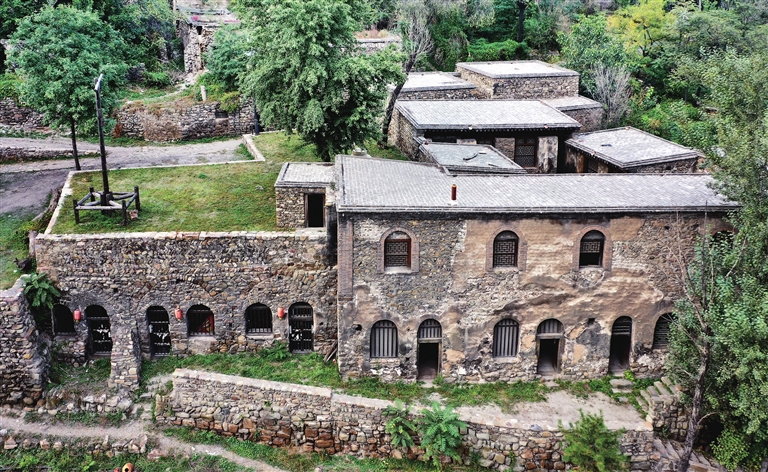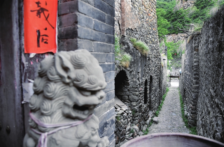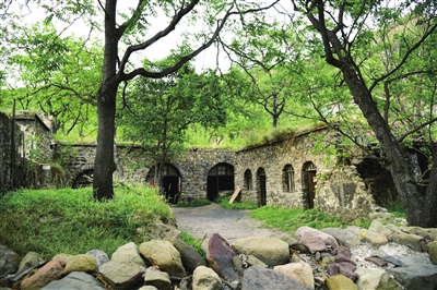 站在风峪沟底向上仰望,可以看到古堡坐落在群山怀抱中,若隐若现。沿着一块块大石头堆砌的街巷放眼望去,一色的石窑洞依山势自然布列,回环隐显,高低有序。进入古村,那错落有致的古窑洞结构严谨,带着兵营特有的进退自如的建筑特点,仿佛把人带回那鼓角争鸣的古战场。