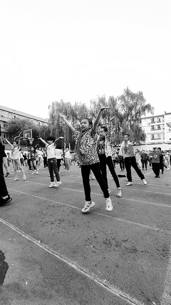 每周三大课间是杏花岭区胜利街小学的韵律操时间。以《你笑起来真好看》为代表的新型课间操的流行,得益于其自身特点:带有很强的趣味性,其活动节奏、音乐编排、舞步设计等都能很好地激发学生兴趣,更容易吸引青春期的孩子。