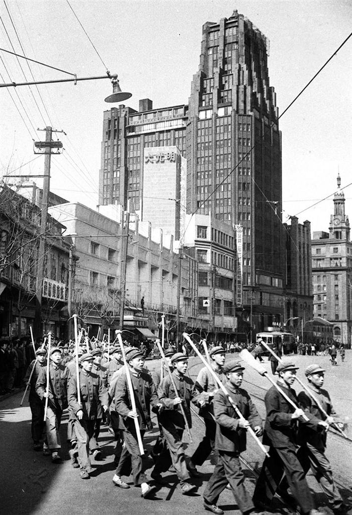 上海解放后,连队随大部队进驻上海,改编为内卫一团二营八连,负责在南京路等地巡逻执勤。