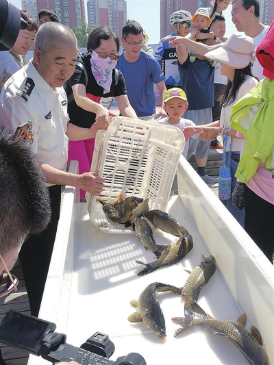 在全国放鱼日到来之际,省市农业部门同步举行山西·太原增殖放流活动,在汾河景区放流≥13厘米/尾的草鱼、鲤鱼等鱼种。大量优质鱼种回归自然,进入汾河,将有力促进汾河的水系物种平衡,有效净化河流水质、改善河道生态、促进汾河流域生态得到进一步保护与修复。