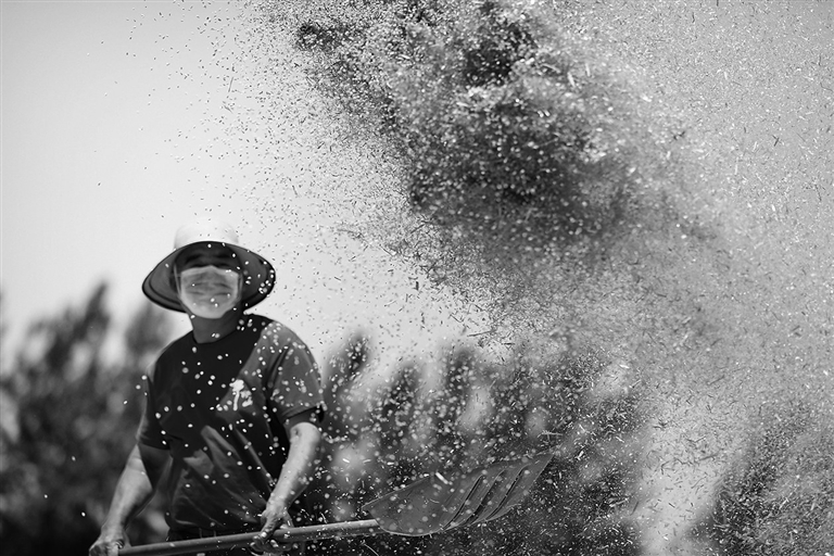 6月6日,安徽省淮北市濉溪县四铺镇谢岭村村民在麦场扬小麦。 “三夏”时节,安徽省淮北市248万亩小麦迎来收获期,当地农民抓住晴好天气抢收小麦。 新华社发