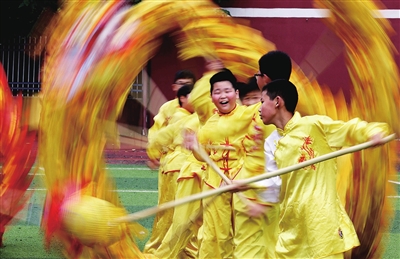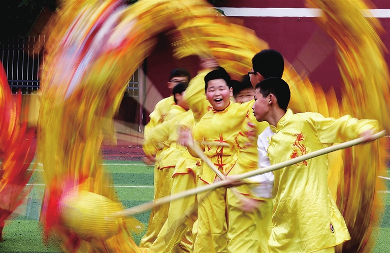 6月10日,合肥市瑶海区蚌埠路第二小学的学生在进行舞龙表演。 当日,安徽省合肥市蚌埠路第二小学在校园里举行迎端午主题活动,孩子们通过参加舞龙表演等民俗活动,感受传统文化,迎接端午节的到来。 新华社发