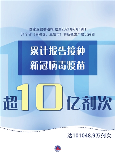 3月24日,我国启动新冠疫苗接种“日报制”。从1亿剂次到2亿剂次,用了25天;从2亿剂次到3亿剂次,用了16天……5月以来,新冠疫苗接种进入“加速跑”,从9亿剂次到10亿剂次仅用5天,日均接种量超过2000万剂次。
