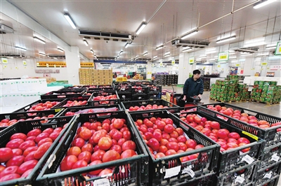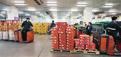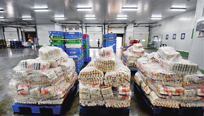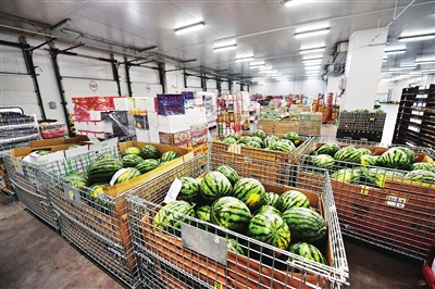 据介绍,农产品冷链加工作业区域面积3万平方米,一层为蔬菜水果加工配送中心和冷冻冷藏品库区及收发货区等,农产品日均出货量达300吨以上,冷链配送率达到100%。二层为生鲜食品加工区,包括畜产粗细加工、蔬菜精加工、水产加工、主食面条加工、冷菜加工、熟食制作、香肠加工等。在满负荷生产时,熟食加工量达4745吨/年。 在全程冷链环境下,物流园共有畜产加工中心、水产品加工中心、蔬果净配菜加工中心、熟食加工中心等8大系列224种产品。生鲜加工中心不同的温度带与运送冷藏车及卖场内的冷柜相结合,就构成了一条完整的冷链加工配送链,可以充分地保证生鲜食品的新鲜。 低温生鲜食品加工中心在全球范围内采买了先进的食品包装类设备、清洗类设备、灭菌消毒类设备、净化水设备等,严格按照工艺合理选择肉禽类、主食类、分割类等先进的加工设备、物流设备、制冷设备等,实现了产品的工业化生产。