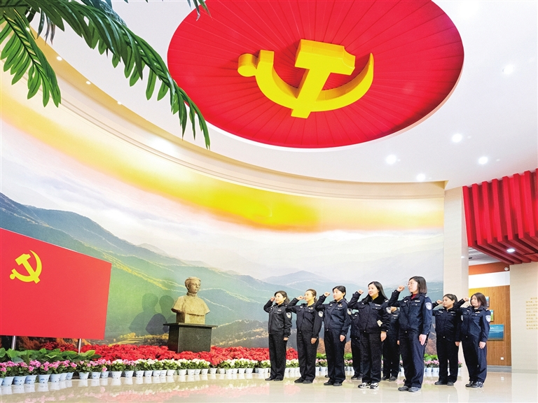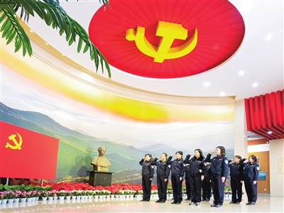 | 公安万柏林分局和平南路派出所党员干警在彭真生平暨中共太原支部旧址纪念馆重温入党誓词。杨素萍 摄 |