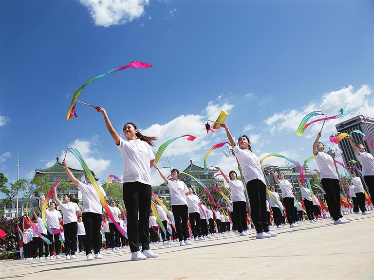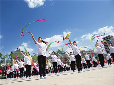 | 我市群众参加多项庆祝活动,把热情洋溢的歌舞献给亲爱的党。