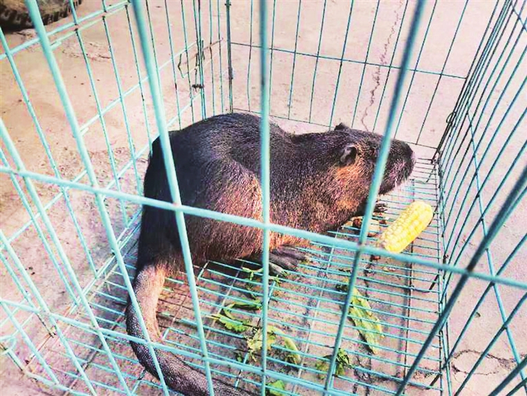 7月5日小店区林业局接到求助电话称,小店区宋环村村民在门口菜地发现一只长相类似老鼠的动物,但不明是啥物种,大概五六公斤重,请求尽快安置处理。小店区林业局工作人员立即前往现场查看,看到该鼠体型巨大,无伤。经现场辨认,判断其为一只海狸鼠,属于外来物种。考虑到外来物种不能放生,遂将其送至太原动物园妥善安置。