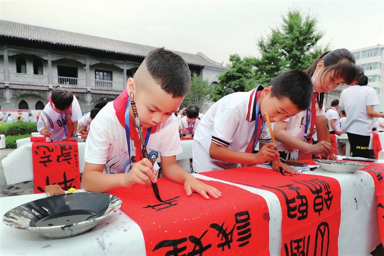7月6日,杏花岭区“流香翰墨颂党恩——百名少年儿童书法现场展演”活动在山西国民师范旧址革命活动纪念馆举办。该区邀请百名曾在省市获得大奖的少儿书法爱好者,共同挥毫泼墨,用手中的毛笔,书写对党的祝福,书写自己的心声,营造“永远跟党走”的浓厚氛围。 杰 华 原 茜 秀 峰 摄