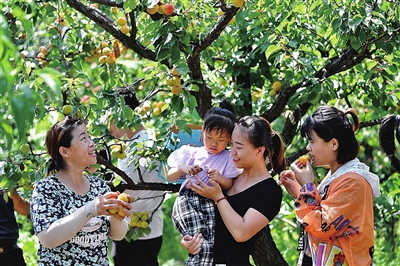 “春天山杏开花的时候,漫山遍野一片雪白,特别漂亮。暑假领着孩子来体验采摘的乐趣,尝尝农家饭,感觉太棒了。”专程从市区赶来的游客丁女士笑着说。“这两年,随着电商的普及,咱老百姓不出家门就能把山杏卖到全国各地。”梁鹏飞说,现在好多种植户尝试“直播带货”,为山杏开辟了新的销售渠道。村民自己拍的一些视频段子传到网上,也吸引了不少市民组团前来采摘。“俺们村准备在800亩杏园的基础上,继续扩大种植范围,打造集休闲、娱乐、采摘为一体的农业综合体。”谈及下一步打算,梁鹏飞信心满满。