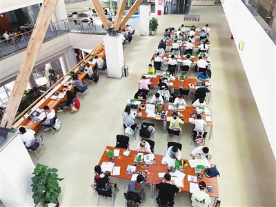 七月十三日,山西省图书馆内,凉爽、安静、舒适的阅读环境,让不少学生选择走进图书馆,学习“充电”。 邓寅明 摄