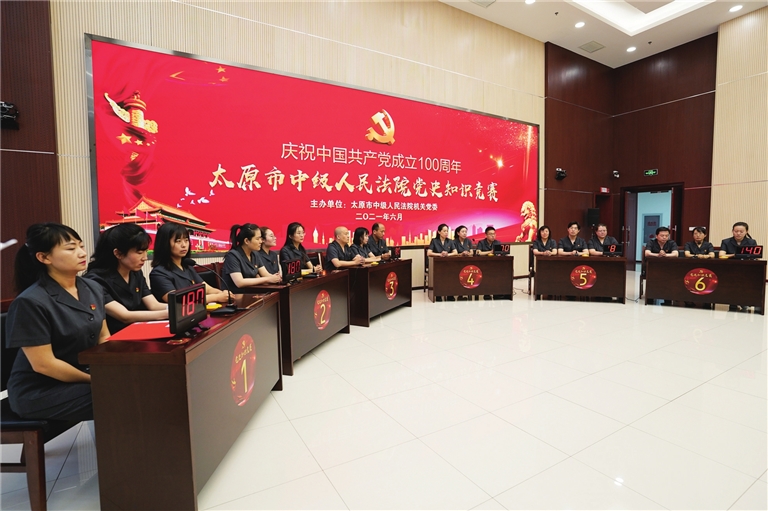 “在20世纪30年代,中国共产党领导的文学界成立的组织是?”“左翼作家联盟!”话音刚落,答案已出。在党史知识竞赛决赛场上,来自市法院的质效办、审委办联合党支部,政治部党支部,刑三庭党支部,民一庭党支部,立案一庭、技术处联合党支部,刑一庭党支部6支队伍相互比拼。
