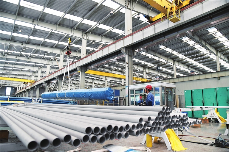 看着这些不锈钢管,有的光洁锃亮、有的磨砂质感、有的粗壮、有的纤细、有的笔直、有的弯曲。据介绍,不同钢管用途不同,一般军工用大口径厚壁管;核电项目用外方内圆管及各种异型管;电站锅炉用高等级锅炉管;化工用超级奥氏体管、镍基合金管;海水淡化、油气输送用双相钢管……