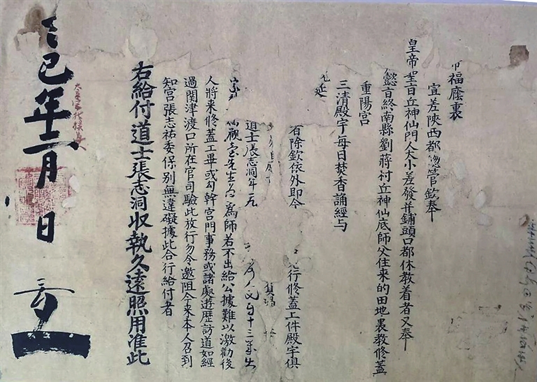 另一张是宣差陕西都总管颁发给全真教道士张志洞的“公据”,是给予张志洞及其道观合法享有蒙古汗廷宗教政策和行使其宗教权利的保障文书。