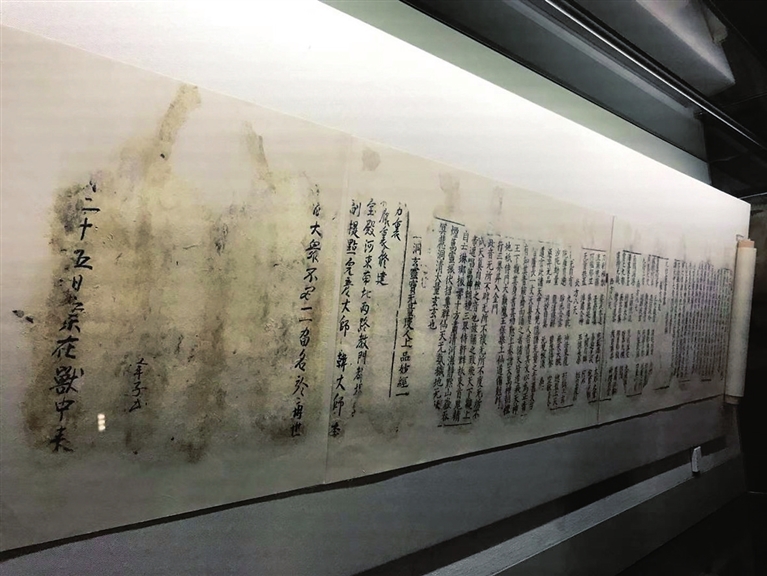 “这部经书原本放置在永乐宫重阳殿西端的鸱吻内。经文用骈文撰写,其中提到永乐宫修建,与重建碑文中记载的内容一致,由此也说明这部经书是在修建过程中放进去的。”安海介绍,“经书是用骈文撰写的,读起来非常优美,装裱方式也非常特别,它的发现具有重大的意义”。