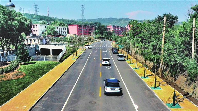 7月18日,沿九院沙河北岸一路向西,数十种植物构成的景观带一路相伴,令人心旷神怡。河道内,清澈的河水哗哗流淌。“九院沙河西延不仅解决了官地矿区和白家庄矿区居民出行‘最后一公里’问题,拉近了矿区和市区的距离,而且大大改善了沿线居民的生活环境。”九院沙河西延治理项目负责人张志伟介绍,这次改造中,他们对原有道路地下管网进行了一系列优化,实现了雨污分流,而且在道路沿线新增了8万平方米的绿色景观带,提升了周边的生态环境质量。如今居住在九院沙河沿线的居民推窗而望,窗外美景一天一个样,借助新修好的快速路,可以直通万柏林生态园、桃花沟、狼坡生态园等景区。