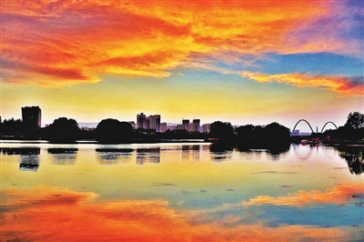 雨后放晴有好云,这是这些年热衷风光拍摄的一个经验。7月13日下午,太原一场大雨后,苍穹通透,风塑云形,瞬息万变。经判断,傍晚必生霞彩。我急忙赶到汾河湿地北中环桥以南找好机位。果然,落日熔金,云似火烧,绮丽满天。从晚六时许至晚八时多,我拍摄了百余帧天象变幻的美妙景色:有骤雨初歇后天空打开一条缝;有太阳从云底钻出的光芒四射;有山巅夕阳与水映射的上下交辉;有落日被层云遮蔽的朦胧之美;有日落后红霞满天与暮云纷飞……