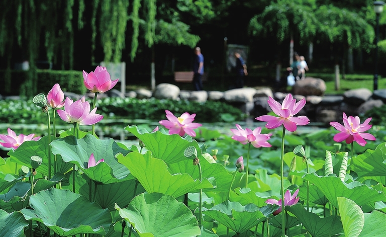7月20日,玉门河公园第十三届荷花节开幕,共展出陆地荷花2000余盆、水面荷花1800余株。 柴杰梁 摄