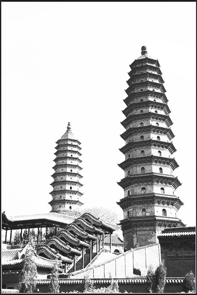 太原,古城晋阳,历史文化,源远流长,文物名胜,光辉灿烂。而永祚双塔,尤以并肩矗立,名冠全国,实为太原之标志。