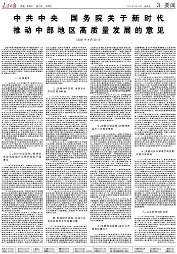 《中共中央 国务院关于新时代推动中部地区高质量发展的意见》发布