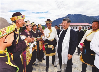 7月21日至23日,习近平在西藏自治区党委书记吴英杰、自治区政府主席齐扎拉陪同下,先后来到林芝、拉萨等地,深入农村、城市公园、铁路枢纽、宗教场所、文化街区等看望慰问各族干部群众。
