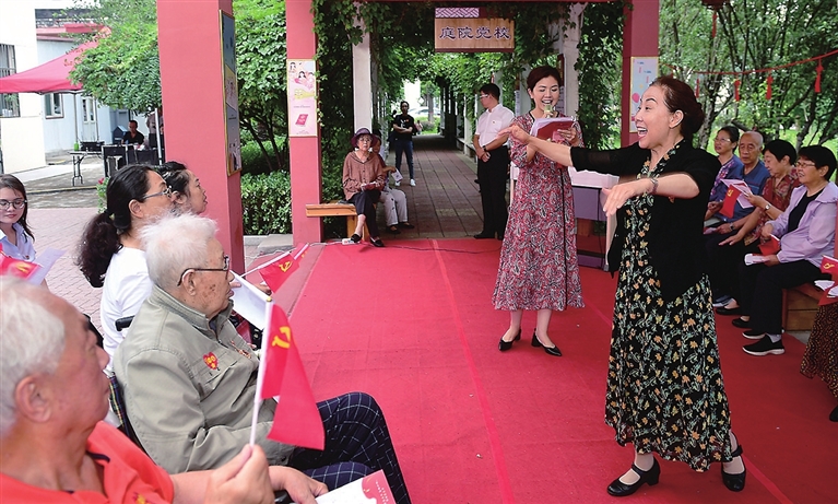 7月22日,在老军营街道劲松社区的音乐课上,老党员们吟唱一首首经典歌曲,重温建党百年的辉煌历程,让党史教育更接地气。柴杰梁 摄