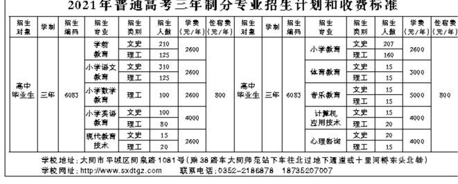 大同师范高等专科学校普通高考三年制师范专科招生