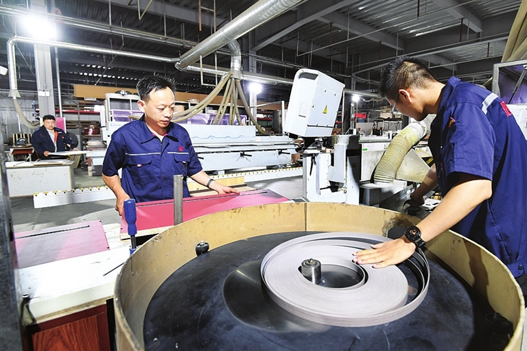 在生产园区,产业集群集聚效应不断显现,木业制作类企业既可以独立完成全套生产工艺的制作,也可以根据订单情况与园内其他特色优势企业分工协作、共同完成。企业承接的每一个订单、每一件产品,都要经过现场测量、电脑设计、精准选材、匠心制作,然后上门服务。为此,各企业成套引进了现代化的数控生产设备,生产效率和产品质量都在全行业居于领先水平,产品远销全国各地,且发展势头良好。
