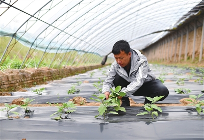 随着乡村振兴战略的推进,许多年轻人带着新的理念和技术回到家乡,成为新时代的“果蔬大王”。在外打工多年的阳曲县河上咀村村民赵立涛回到家乡创业,发展蔬菜大棚产业和食用菌种植。在对接超市的同时,开展“私人定制”服务,建立基地直供、集中配送的模式,把收获的蔬菜、水果等统一配送给需要的客户。图为赵立涛在蔬菜大棚里忙碌。 新华社记者 詹 彦 摄