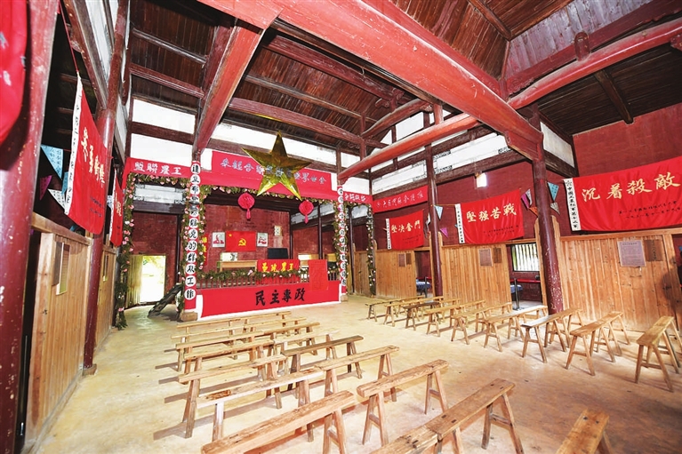 然而,乡野间一座仅500余平方米的小小祠堂,便“装”下了整个红色政权的首脑机关。走进瑞金叶坪镇谢家祠堂,可以看到10余个用木板隔出的小间,其面积虽小,却有着响亮的名字:外交人民委员部、司法人民委员部……