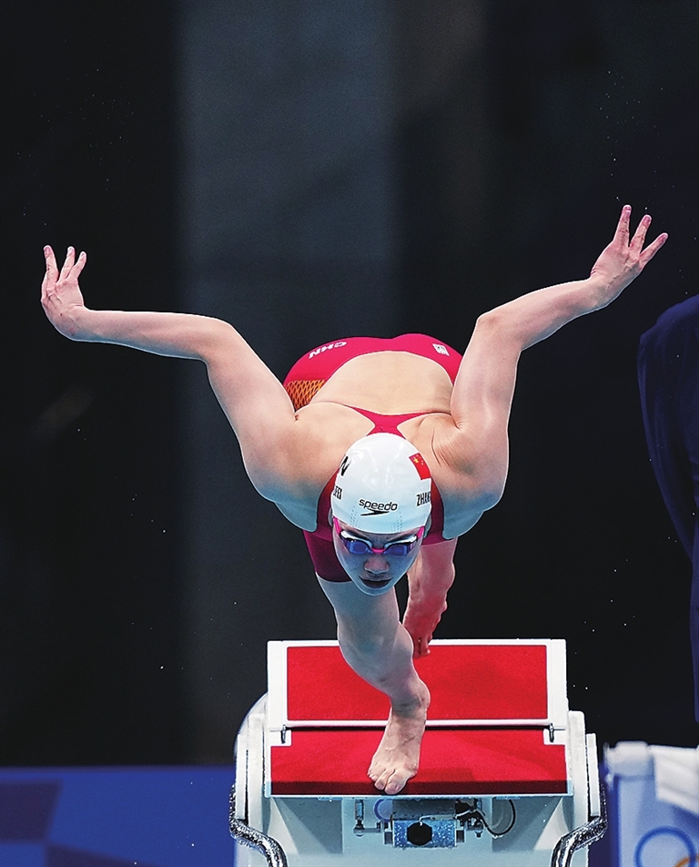 当日,在东京奥运会女子200米蝶泳决赛中,中国选手张雨霏夺得冠军。 新华社记者 许 畅 摄