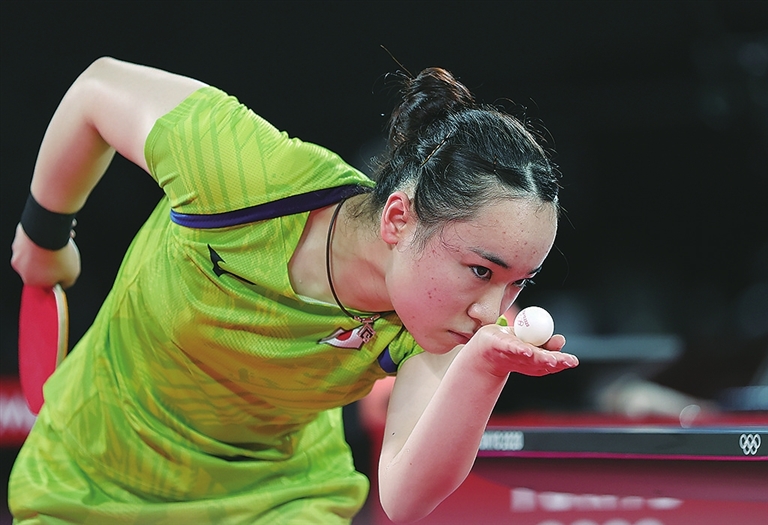 7月29日,日本选手伊藤美诚在比赛中。 当日,在东京奥运会乒乓球女子单打半决赛中,中国选手孙颖莎以4比0战胜日本选手伊藤美诚。 新华社记者 王东震 摄