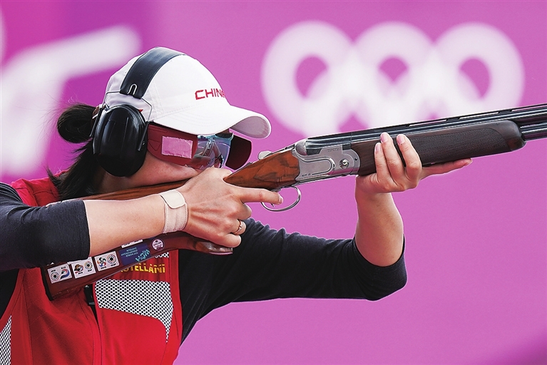 ▲7月29日,中国选手王晓菁在比赛中。 当日,在东京奥运会射击女子多向飞碟资格赛中,中国选手王晓菁未能晋级决赛。 新华社记者 鞠焕宗 摄