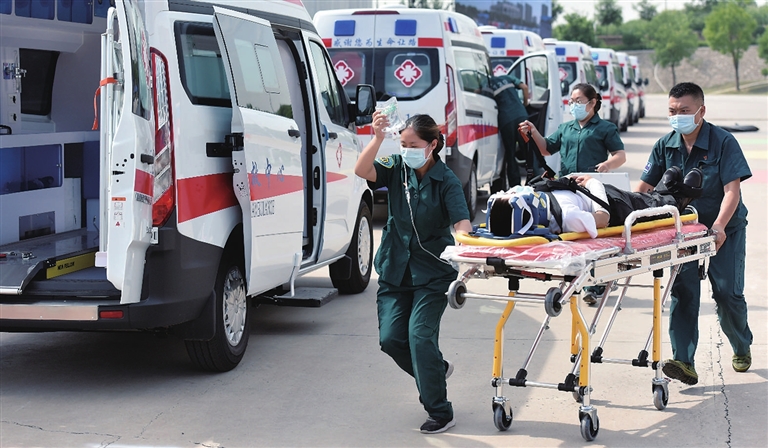 8月5日,山西省卫生健康委员会组织开展“卫生应急实战演练”,消防、急救中心、防疫等多部门进行统一调度联动。此次演练旨在全面提升应对突发公共卫生事件应急处置能力,保障人民群众生命健康安全。 邓寅明 摄