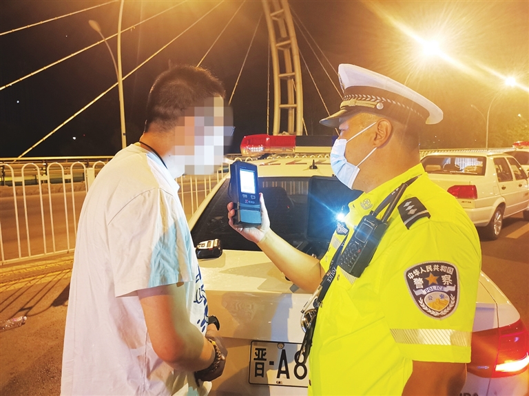 交警组织夜查 严厉查处酒驾