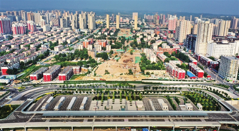 8月11日,迎泽大街东延道路工程现场,道路及相关配套设施建设正在加紧推进。迎泽大街是太原市的标志性主干道和城市中轴线,东延工程西起双塔北路,东至东中环路,全长1.25公里,对于完善路网建设、改善投资环境、促进产业发展具有重要意义。 邓寅明 摄