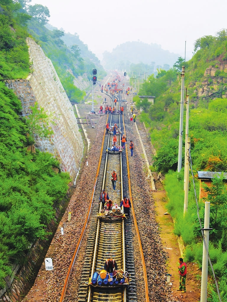 为提升线路质量,保障运输安全,太原工务段、太原工务机械段以及太原供电段、太原电务段等单位利用列车运行间隔的“天窗点”,对该线进行大规模综合修理维护。