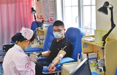 8月14日,迎泽区柳巷献血屋,市民利用休息日前来献血。近期,太原血液中心血液库存偏低,急需各型血液,呼吁更多的爱心人士加入到无偿献血中。 牛晨阳 摄