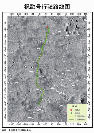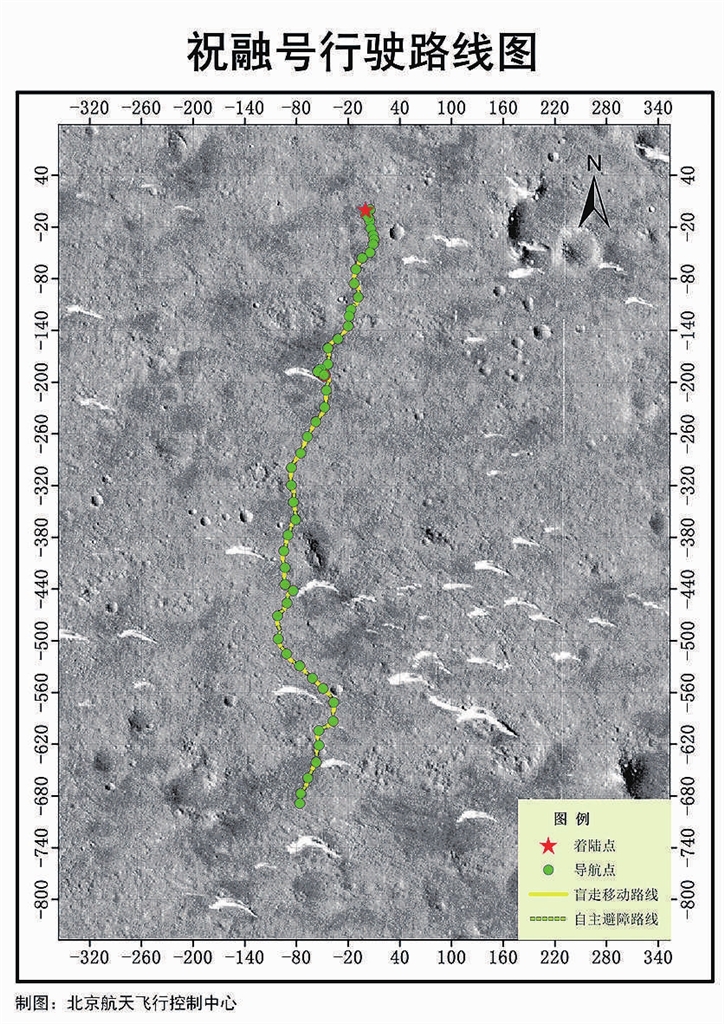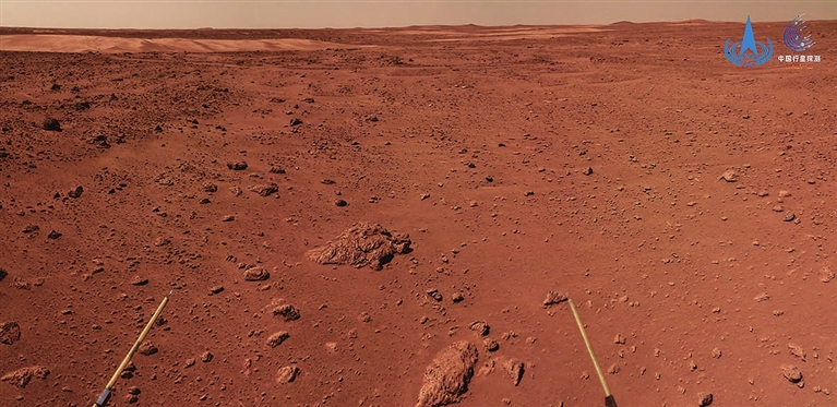 在巡视探测期间,祝融号按照“七日一周期,一日一规划,每日有探测”的高效探测模式运行。导航地形相机获取沿途地形地貌数据,支持火星车路径规划和探测目标选择,并用于开展形貌特征与地质构造研究;次表层探测雷达获取地表以下分层结构数据,用于浅表层结构分析,探寻可能存在的地下水冰;气象测量仪获取气温、气压、风速、风向等气象数据,用于开展大气物理特征的研究;表面磁场探测仪获取局部磁场数据,与环绕器磁强计配合,探索火星磁场演变过程;表面成分探测仪、多光谱相机获取特定岩石、土壤等典型目标的光谱数据,用于元素和矿物组成等分析研究。