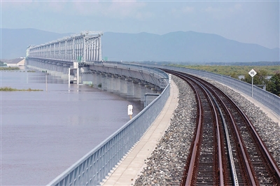 中俄首座跨江铁路大桥铺轨贯通
