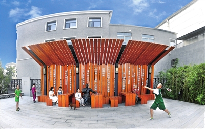 在太原市坝陵北街、东三道巷等居民聚集区,对闲置地、边角地进行景观升级,增设绿植、甬道、路灯、座椅等基础设施,建设了“军事记忆”“民国风情”“市井生活”“西洋记忆”“校园风光”等主题“口袋公园”。 这些点缀在街角的“口袋公园”,是太原市府城文道历史文化街区改造项目的亮点,为群众日常生活提供了休闲健身的公共空间,改善了人居环境,提升了城市品位,增强了市民的获得感和幸福感。 坝陵北街与五一路“丁”字交叉口处,一座“L”型的苏联专家楼,是太原市府城文道示范段的主入口。楼前,不大的区域内,风格硬朗的景观廊架,成了人们理想的休憩地。阳光透过栏间,光影斑驳,美在其中。