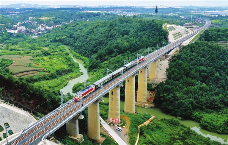 贵阳环线铁路闭环完成 8月19日,检测车行驶在贵阳环线铁路新开通段上(无人机照片)。当日,随着首趟检测车缓缓驶出,标志着新建贵阳枢纽小碧经清镇东至白云联络线开始联调联试,进入工程验收关键阶段。 据了解,贵阳环线铁路全长约94公里,此次开通的是贵阳环线小碧至白云北段,全长约81公里,与前期通车的白云至小碧铁路相连后,形成贵阳环线闭环。 新华社记者 刘 续 摄