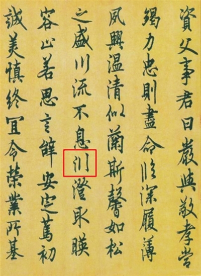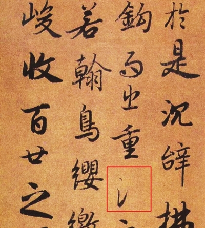 在许多传世的书法作品中,都能见到避讳字的身影。如《兰亭序》中的“揽”是王羲之为避曾祖王览讳而加了偏旁。柳公权楷书《大唐回元观钟楼铭》中的“世”缺笔,是为了避唐太宗李世民的讳。欧阳询的行书《千字文》中有一个“渊”字,今天看来,绝对是“缺斤少两”的错别字。但其实,欧阳询并非忘了“渊”字怎么写,而是刻意做了缺笔处理,以此避讳唐高祖李渊的名讳。