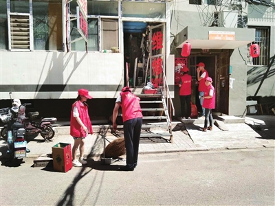 每逢星期五,大东关街道便会积极动员街道机关、各社区、驻地单位、小区物业、门店商家及多个志愿者团队一起动手,清理卫生死角、楼院和楼道杂物,清洗地面和建筑外立面,清除小广告,捡拾路边的废弃物,搬运积存已久的大件垃圾。在党员干部、志愿者的带动下,周边居民也会主动加入进来,大家分工合作,默契配合,每个人都干劲十足。