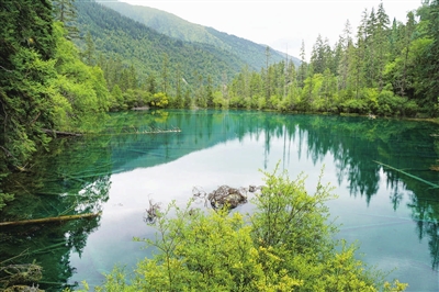 这是九寨沟神仙池景区内的“青龙海”(8月23日摄)。