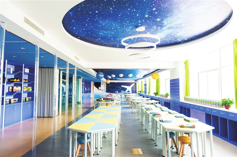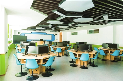 现代化的学校,离不开智慧化信息化的网络设备,万柏林区中心实验小学信息化建设投入700余万元,搭建智慧云教育平台,让学生、家长、老师及时互通,让教室、办公室和家庭实现空间互通。“我们的创客室、录播教室、崇文图书馆、智慧电子班牌等都是精心打造的亮点。”校长张晓东介绍说,特别是录播教室具有自动化录制、直播、点播、自动跟踪和自动上传存贮等多种功能,满足了精品视频公开课、精品课程、远程教育的视频制作;学生们每天通过电子班牌扫脸签到签退,在校各方面表现家长会实时收到信息反馈,还能随时查阅课程表、校园活动、班级评价等信息;崇文图书馆借鉴市图书馆的建设模式,藏书2万余册,并配备墨水屏的电子图书阅读器,上万册图书杂志可以随意下载自动更新。