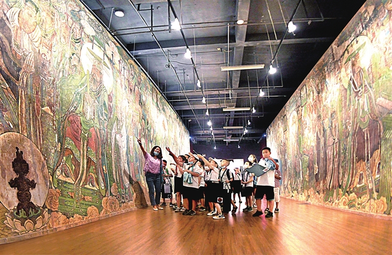 素有“东方画廊”美誉的永乐宫壁画,是我国现存最完整的道教壁画代表作,与敦煌壁画并称“东方壁画艺术最高典范”。这个夏天,“复活”在山西博物院的永乐宫壁画,让前来参观学习的学生们,直观地感受到了传统文化的魅力。