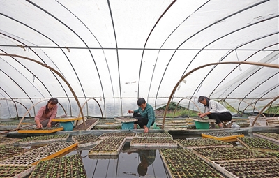 8月29日,村民在江苏省泗洪县孙园镇臧石村的水上育苗大棚里间苗。 地处洪泽湖畔的江苏省宿迁市泗洪县孙园镇水资源丰富,土地肥沃,蔬菜种植是当地主导产业之一。该镇采取“合作社+基地+农户”方式,通过大棚水上育苗,年培育各类蔬菜苗5亿多株。与传统育苗方式相比,水上育苗不但节约土地、病虫害少,而且育苗周期短、蔬菜成活率高。培育的菜苗除满足本地菜农需求,还供应周边乡镇,蔬菜生产由“一季一菜”变成“一季多茬”,有力促进了农民增收。 新华社发